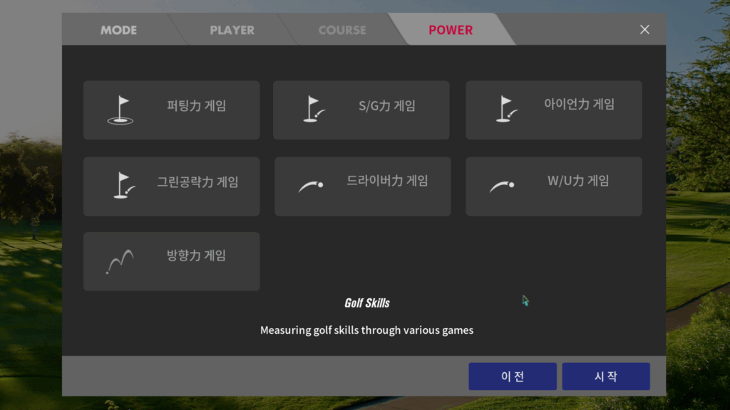골프력 게임에는 다양한 거리 연습과 보다 효율적인 스윙을 빨리 체화하기 위한 프로그램들이 들어 있습니다.