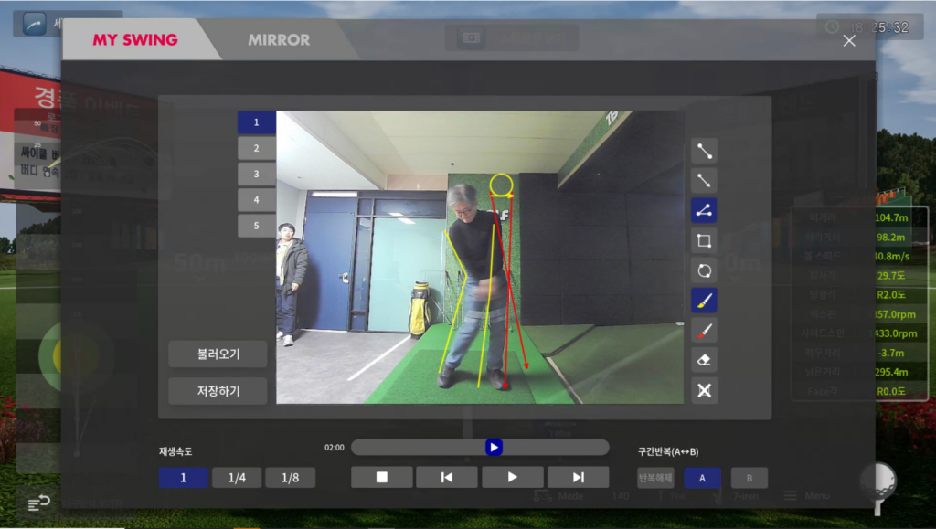 HappyGolf에는 녹화된 스윙 영상으로 분석을 하고 스윙 교정을 위한 각종 편리한 도구들이 있습니다. 골퍼 자신이 스윙 영상을 직접 보고 분석도 가능하고, 티칭프로가 레슨할 때 사용할 수 있는 다양한 도구들을 갖추고 있습니다.
